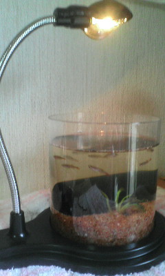 この子たち、ずーと水槽がなくて…(この子たちには大きすぎる水槽しかなくて)バケツで過ごしていました。