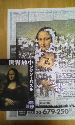 あと。小さいパズルってのがいいね。同じ1000ピースでも普通の大きさのパズルでは、出来上がった後の置き場所に困ってたけど、これなら、小さいから楽。そして、ふつーより難しくなるから面白くなるヾ(^▽^)ノ