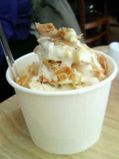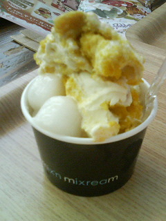 これは、アイスなんだ~この頃よくあるアイスストーンで練って作ってくれるアイス。友達がカボチャとかを自由にトッピングしてもらったバージョン。