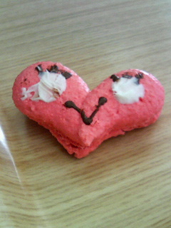 これは、友達が買った。マカロン。本当は、目があったんだけど、このめっちゃ暑くてさ~袋から出したら、チョコが溶けちゃってて、目が~目が~