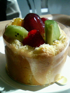 スポンジにフルーツが載ってるだけじゃない!これは、中にカスタードが入っております。クリームもかな?