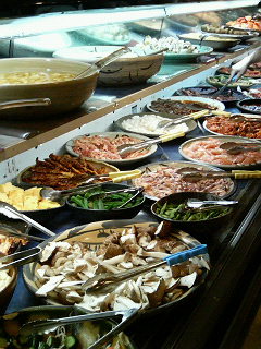 焼肉バイキングですよ!!いろいろな肉がどっさりあって2時間でいくらでも食べていいの。その上、アイス、寿司、カレー、中華、ケーキ、なんでもござれ!って感じだった!!